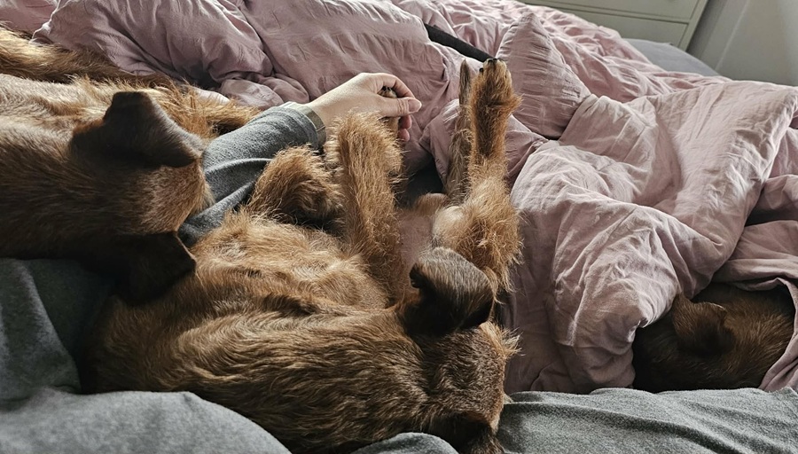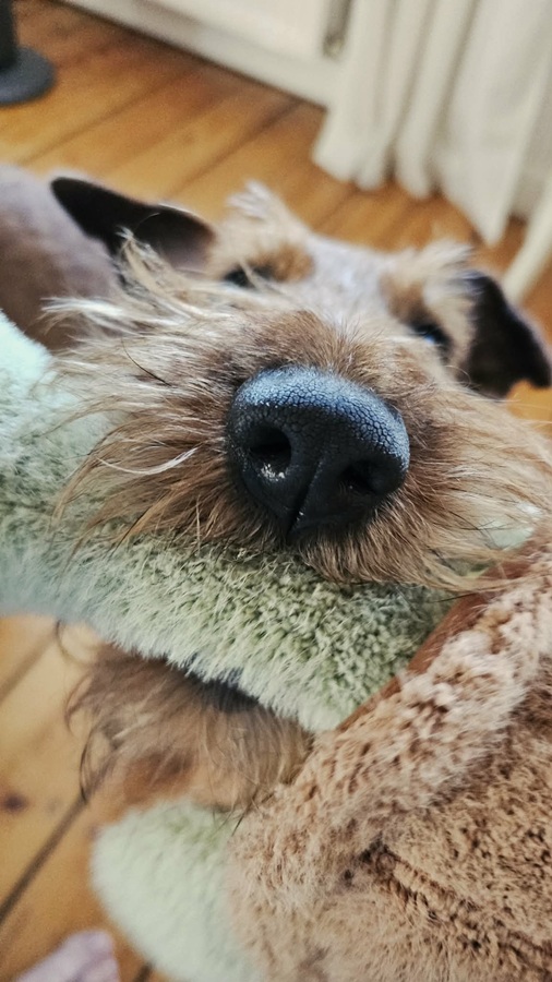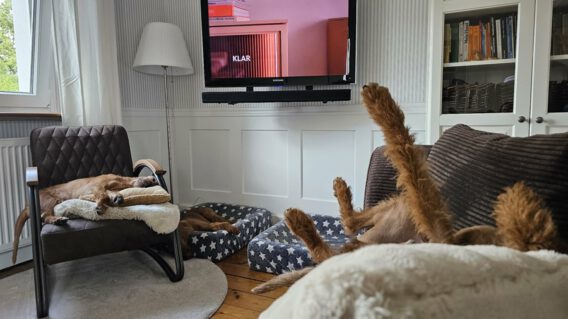 Jeder hier kennt die schönen Fotos meiner meist ordentlich frisierten Hunde mit der großen Kamera. Hier nun mal noch ein paar Handy-Fotos aus dem Leben der drei Amigo in 2025