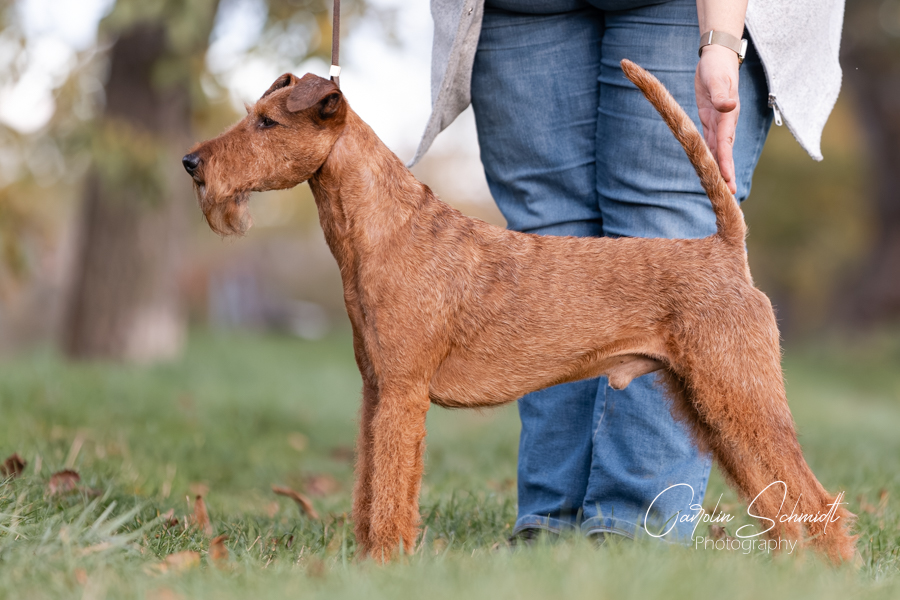 Spicy und ich waren übrigens im August wieder in England auf Ausstellung bei der North of England Irish Terrier Club zur Championship Show. Gerichtet wurden die Irish Terrier-Spezialistin Ann Bradley, die selbst seit vielen Jahrzehnten Irish Terrier unter dem Zwingernamen Montelle züchtet. Sie kürte Spicy zur besten Hündin und Res. Best in Show.